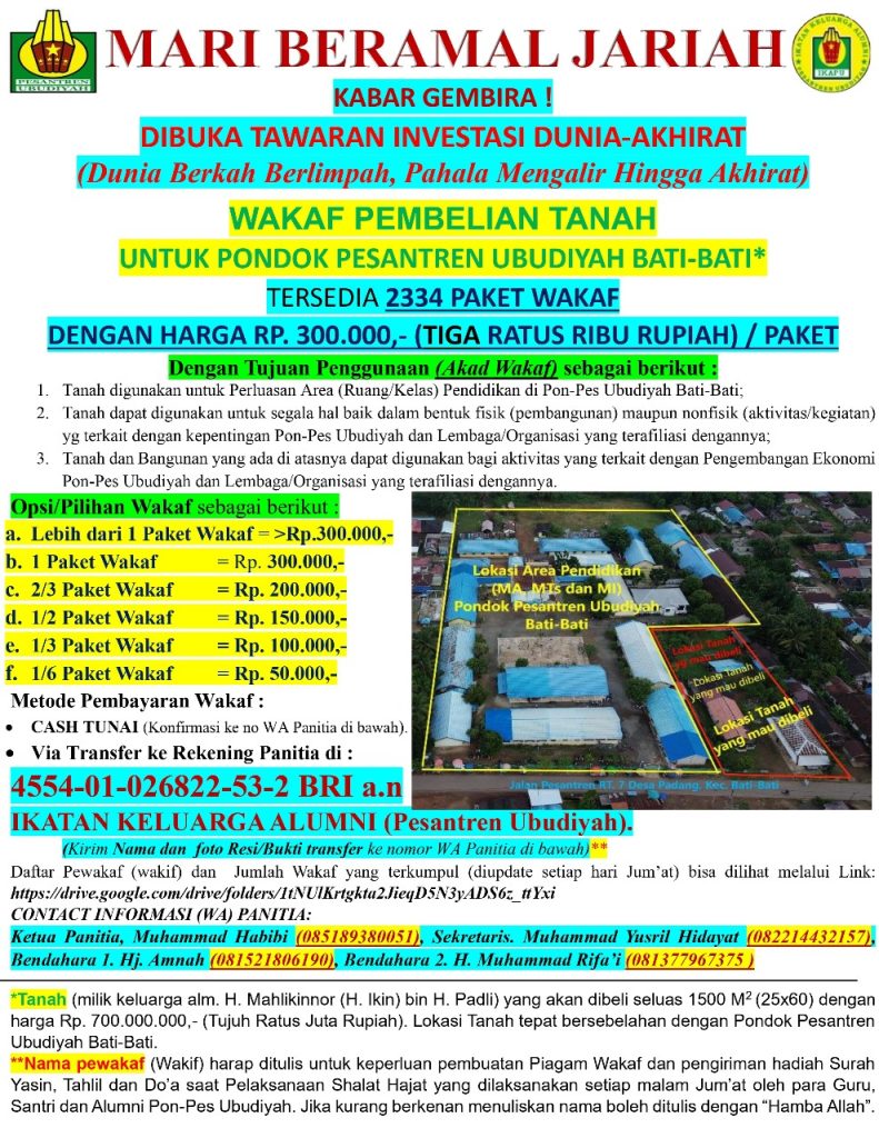 Waqaf tanah untuk Pondok Pesantren Ubudiyah